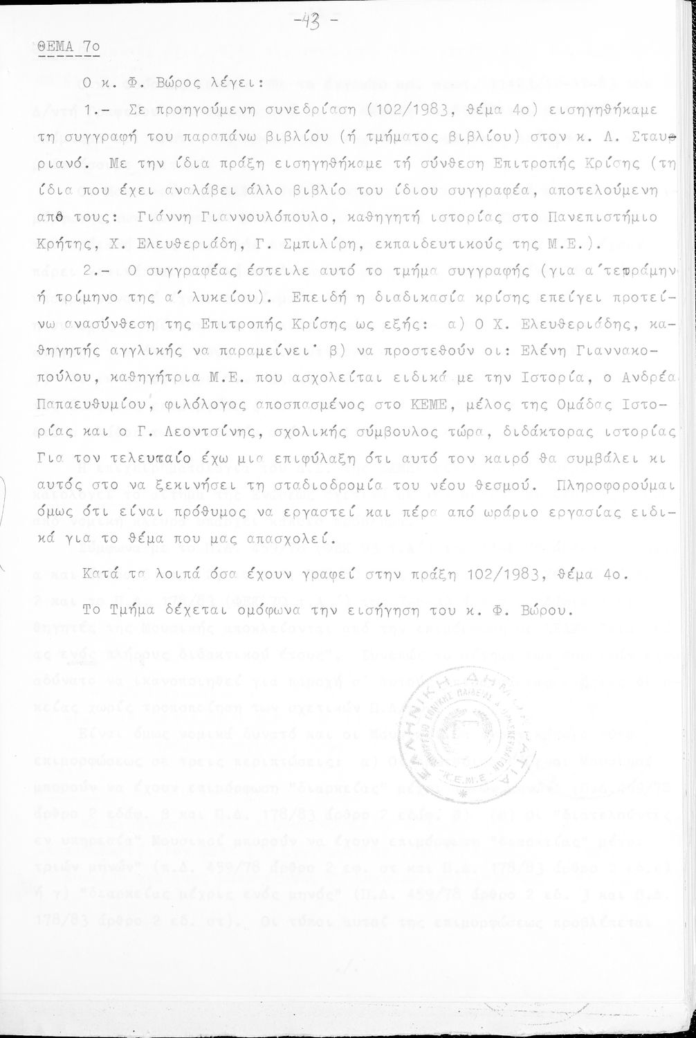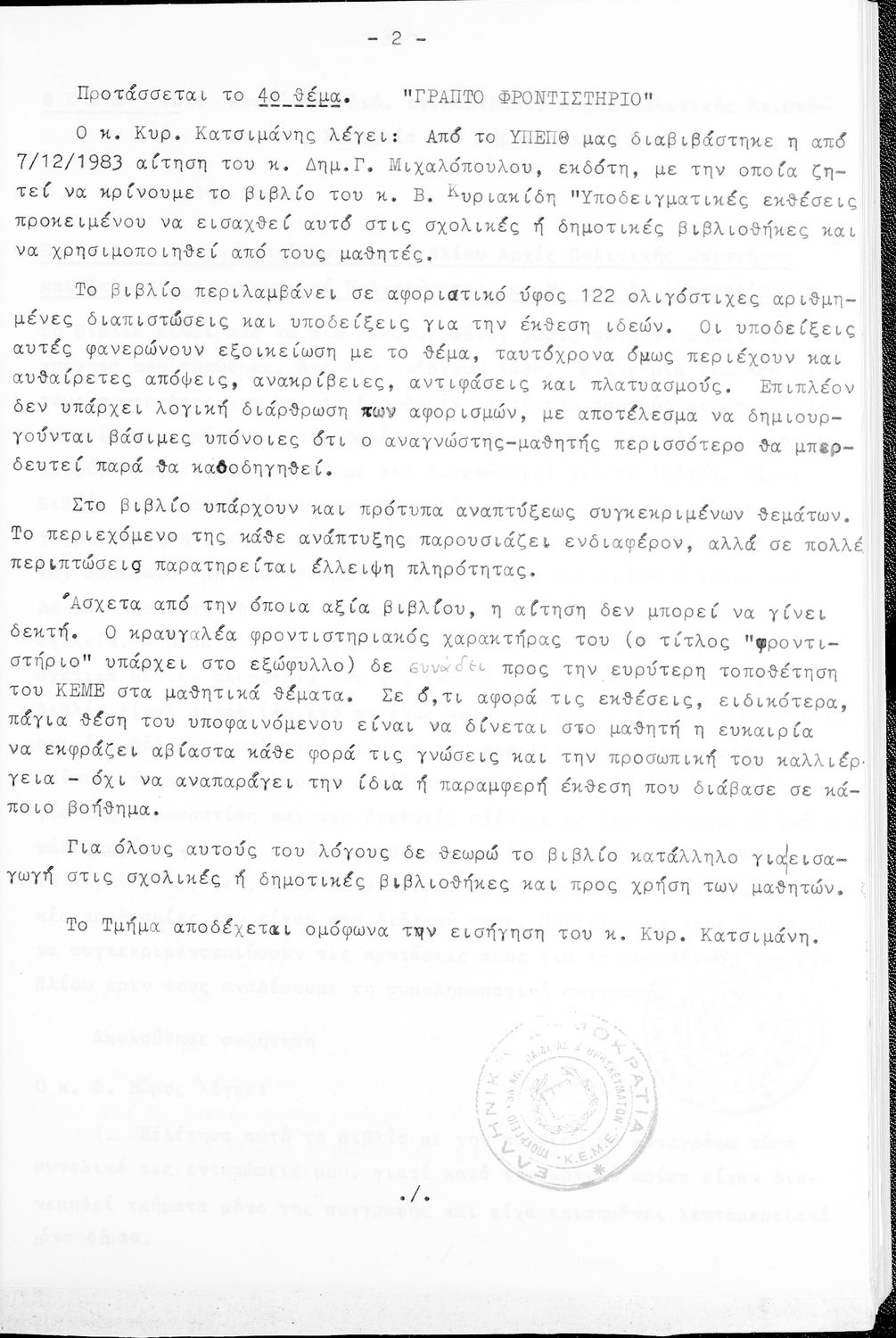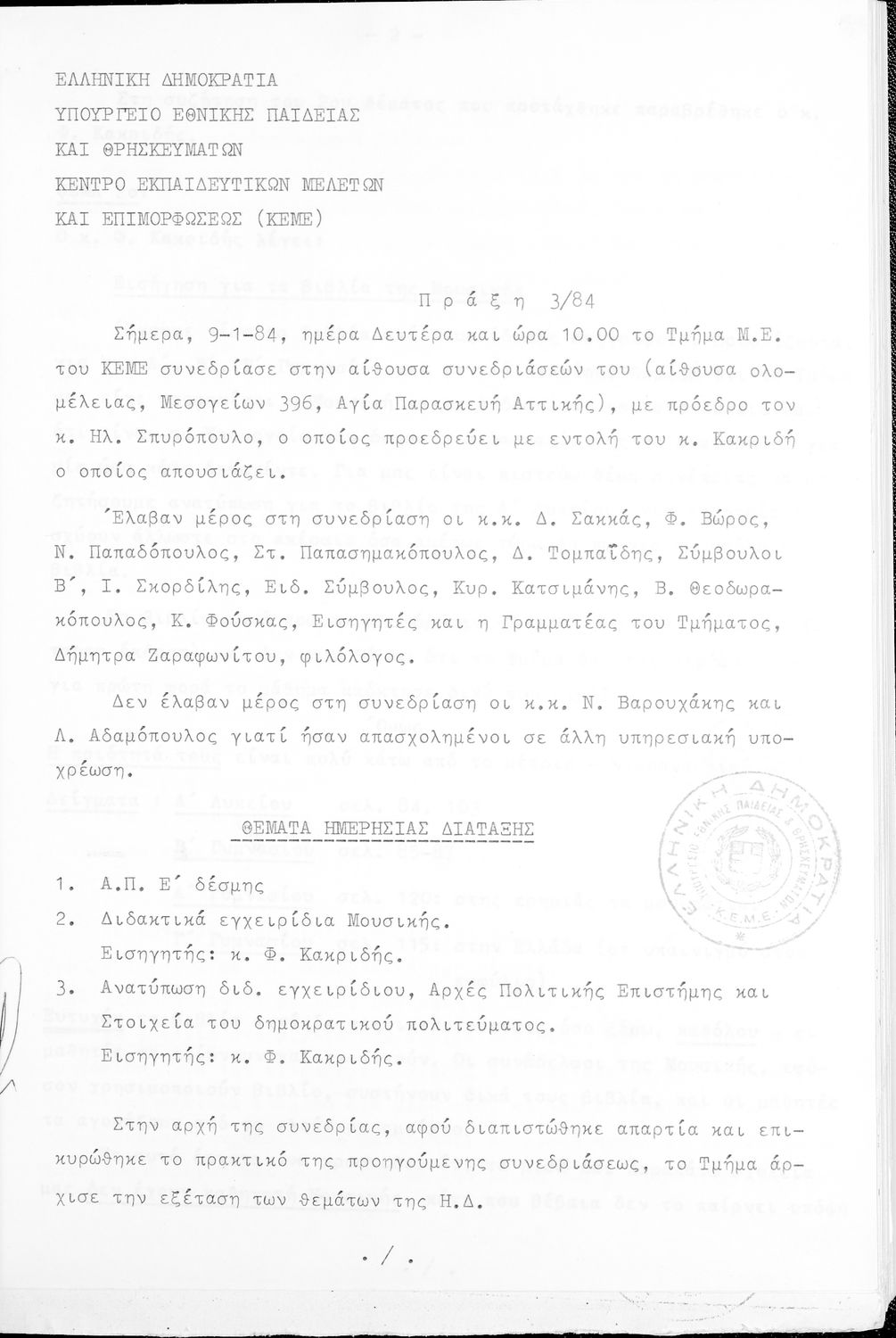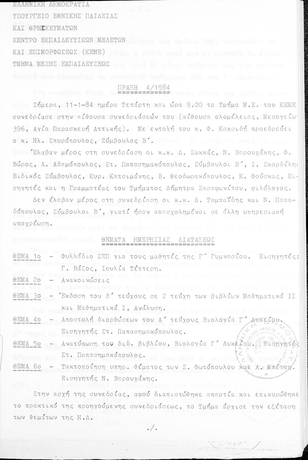 Κωδικός αναγνώρισης: 1984-0116 Τίτλος: Τμήμα Μέσης Μέγεθος και υπόστρωμα: Πρακτικά κεμε, 402 σελίδες. |