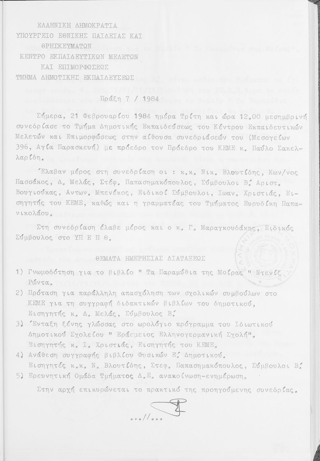 Κωδικός αναγνώρισης: 1984-0131 Τίτλος: Τμήμα Δημοτικής Εκπαίδευσης Μέγεθος και υπόστρωμα: Πρακτικά κεμε, 472 σελίδες. |