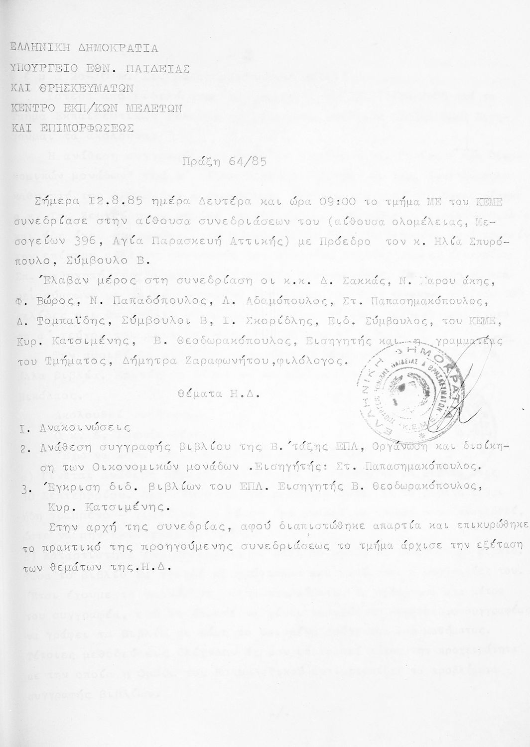Κωδικός αναγνώρισης: 1985-0121 Τίτλος: Τμήμα Μέσης Μέγεθος και υπόστρωμα: Πρακτικά κεμε, 365 σελίδες. |