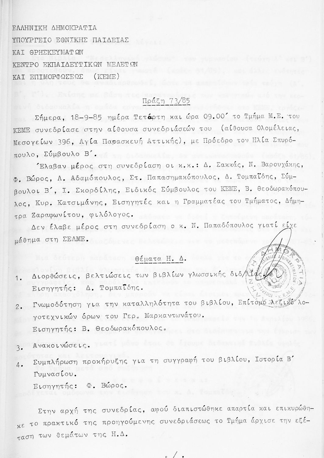 Κωδικός αναγνώρισης: 1985-0121 Τίτλος: Τμήμα Μέσης Μέγεθος και υπόστρωμα: Πρακτικά κεμε, 365 σελίδες. |