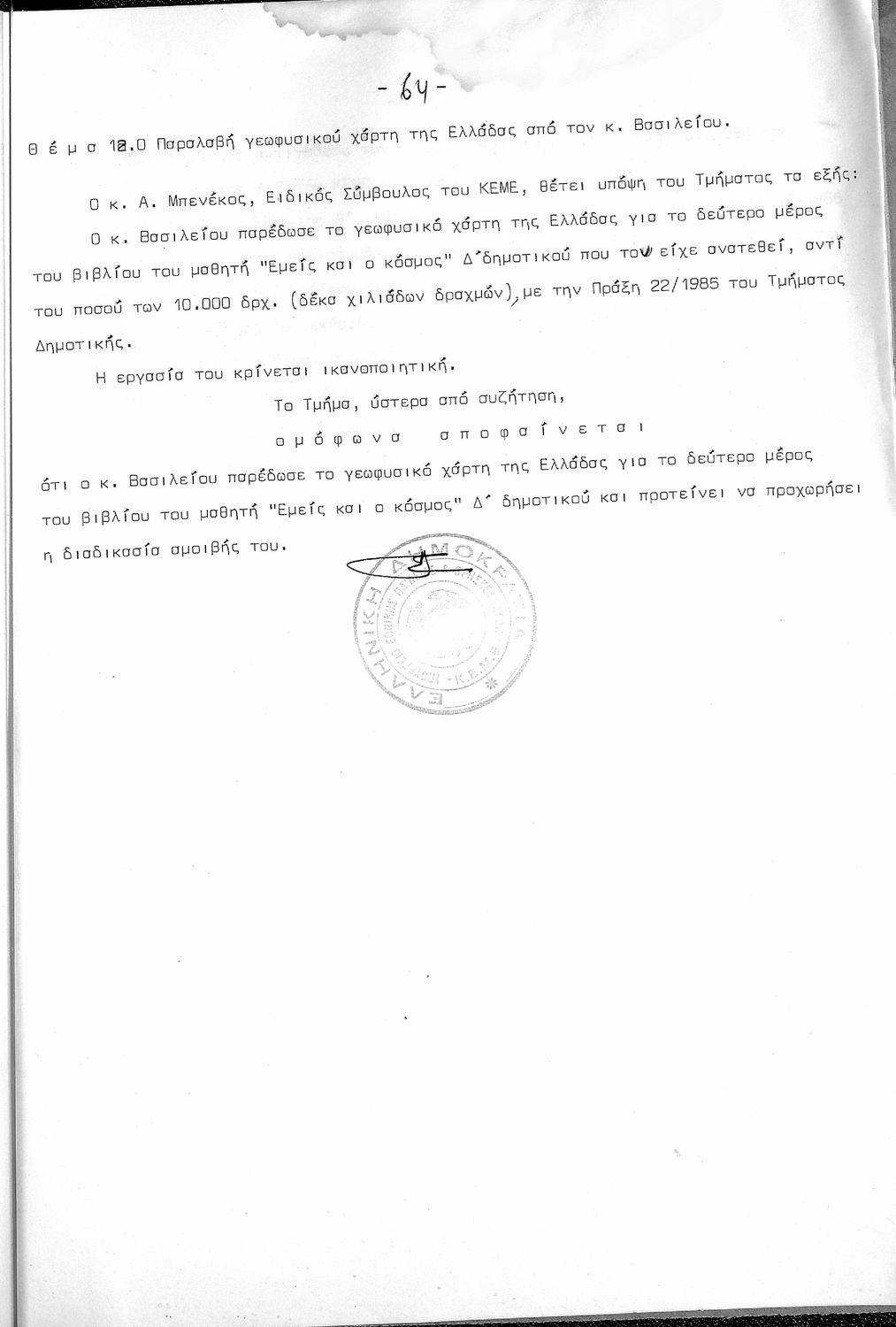 Κωδικός αναγνώρισης: 1985-0132 Τίτλος: Τμήμα Δημοτικής Εκπαίδευσης Μέγεθος και υπόστρωμα: Πρακτικά κεμε, 564 σελίδες. |