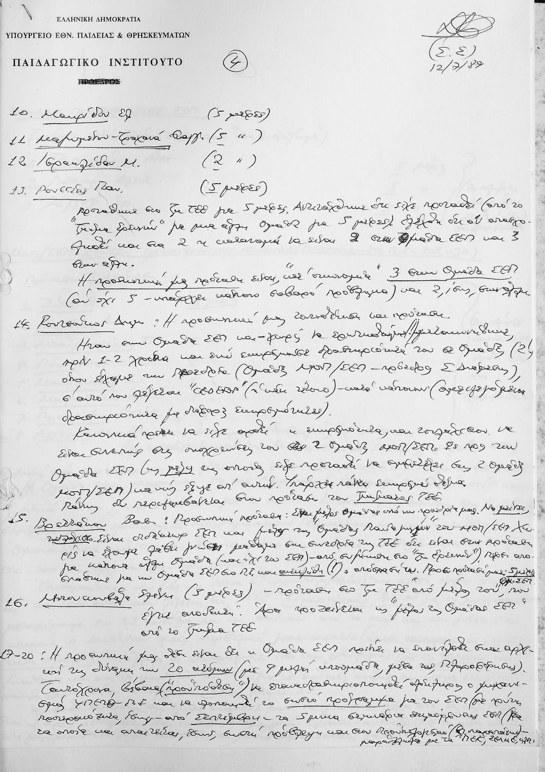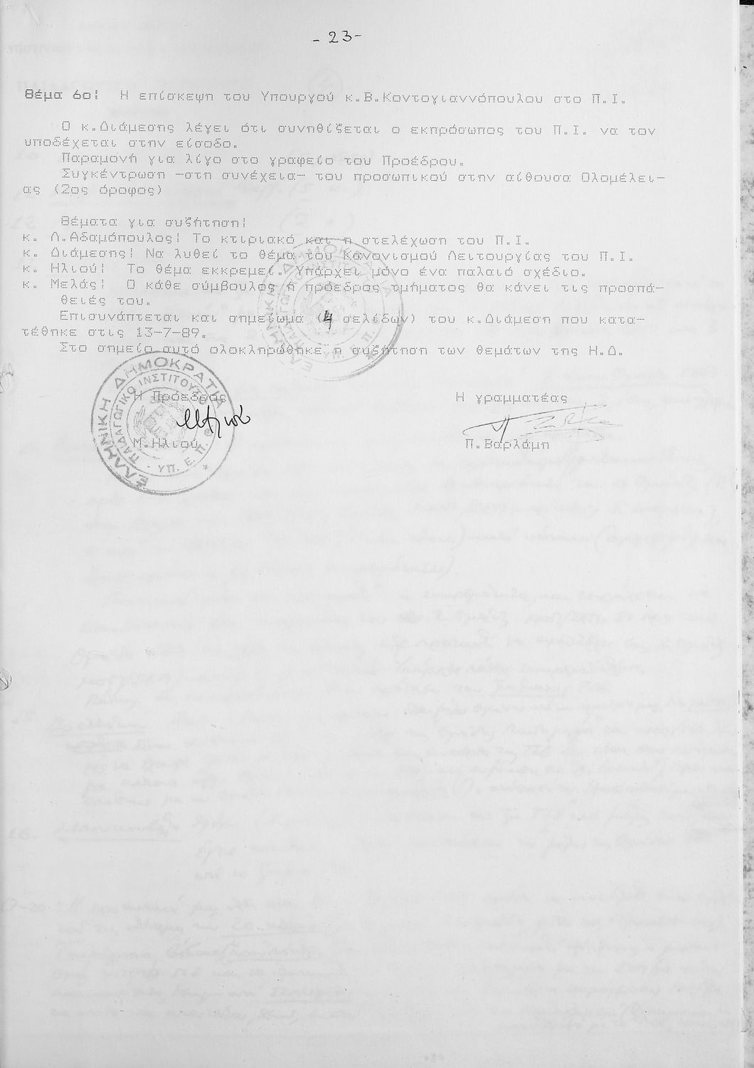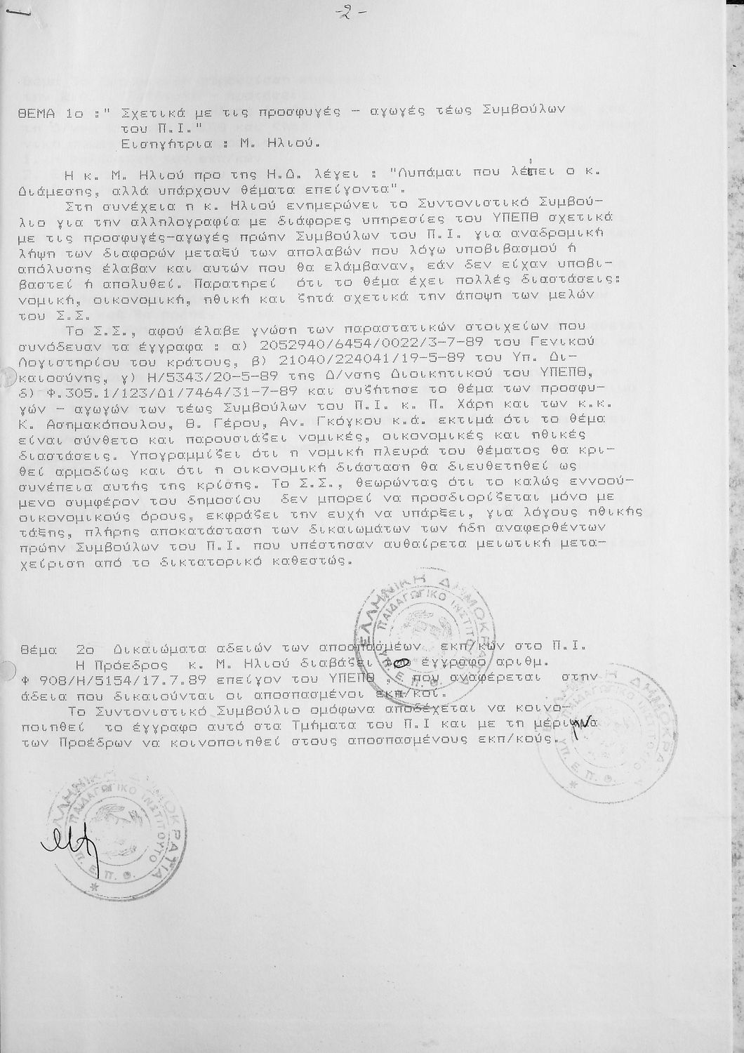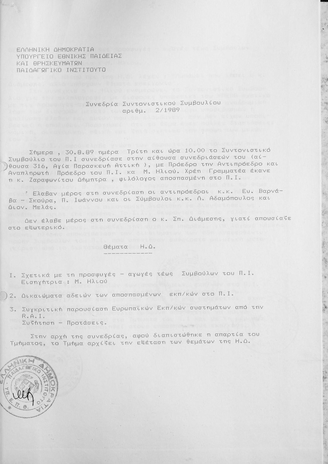 ΠΡΑΚΤΙΚΑ ΤΜΗΜΑΤΟΣ ΠΡΩΤΟΒΑΘΜΙΑΣ ΕΚΠΑΙΔΕΥΣΗΣ 1990 1-30 / ΣΥΝΤΟΝΙΣΤΙΚΟ 1988-1989