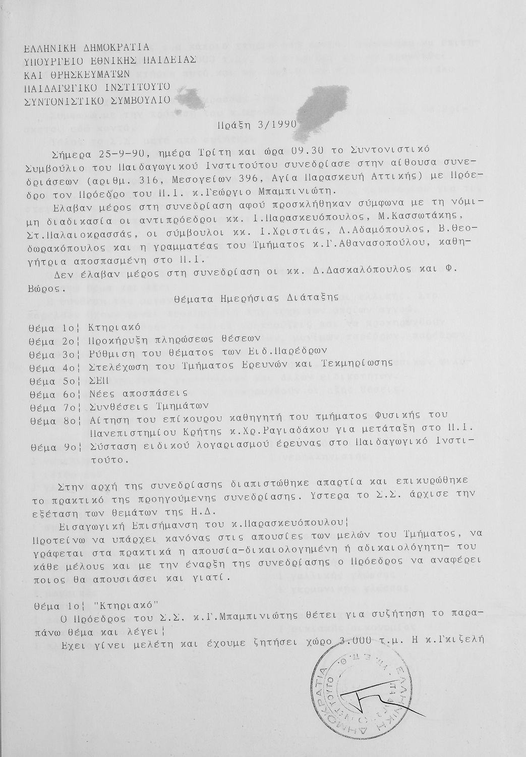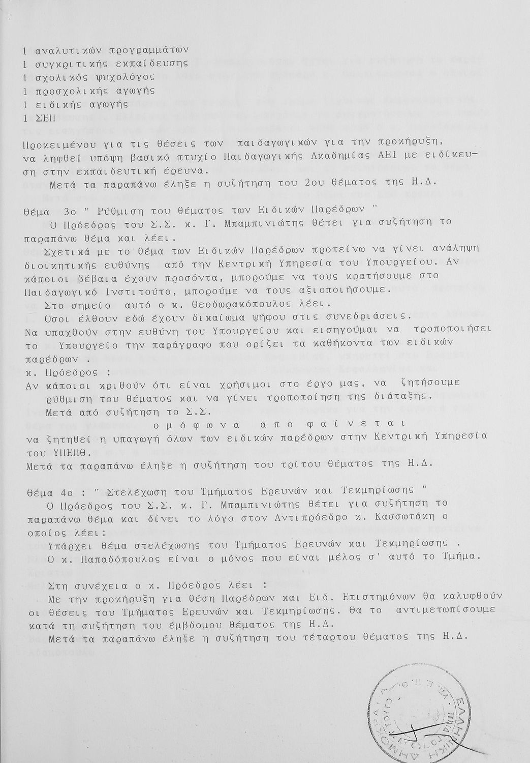 Κωδικός αναγνώρισης: 1990-0204 Τίτλος: ΠΑΙΔ. ΙΝΣΤ ΠΑΡΑΡΤΗΜΑ ΣΥΝΤΟΝΙΣΤΙΚΟ 3-1990 / ΕΡΕΥΝΩΝ 6&7 1991 Μέγεθος και υπόστρωμα: Πρακτικά σσ. |