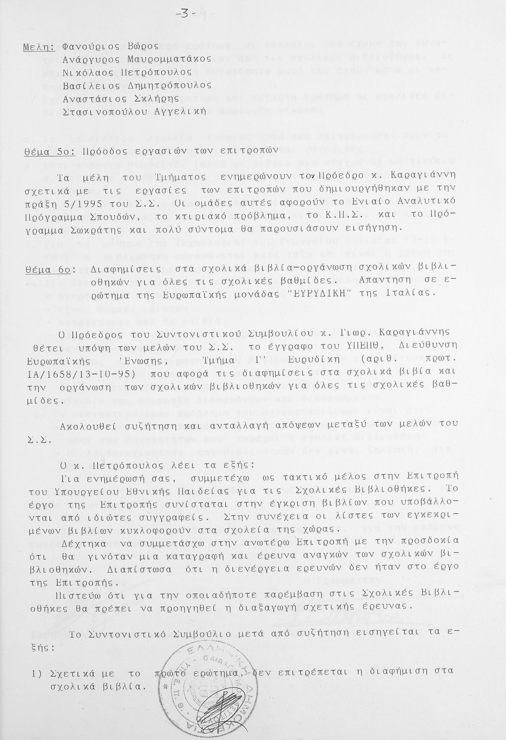 Κωδικός αναγνώρισης: 1995-0209 Τίτλος: ΠΑΙΔ. ΙΝΣΤ ΣΥΝΤΟΝΙΣΤ. ΣΥΜΒ. Μέγεθος και υπόστρωμα: Πρακτικά σσ. |